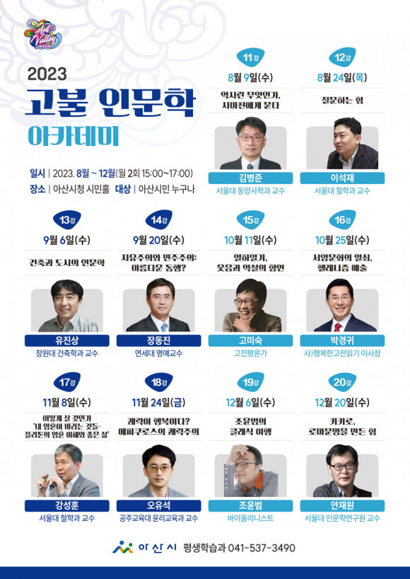 2023 °íºÒ Àι®ÇÐ ¾ÆÄ«µ¥¹Ì´Â ½Ã¹Î ´©±¸³ª ¹«·á·Î Âü¿©ÇÒ ¼ö ÀÖÀ¸¸ç, ÀÚ¼¼ÇÑ »çÇ×Àº Æò»ýÇнÀ°ú(041-537-3490)·Î ¹®ÀÇÇÏ¸é µÈ´Ù.
