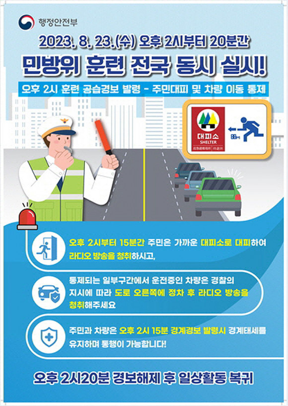 À̳¯ ÈÆ·ÃÀº ¿ÀÈÄ 2½ÃºÎÅÍ ¡®°ø½À°æº¸¹ß·É¡¯, 15ºÐ ¡®°æ°è°æº¸ ¹ß·É¡¯, 20ºÐ ¡®°æº¸ÇØÁ¦¡¯ ¼øÀ¸·Î Àü±¹¿¡¼ µ¿½Ã ÁøÇàµÈ´Ù.