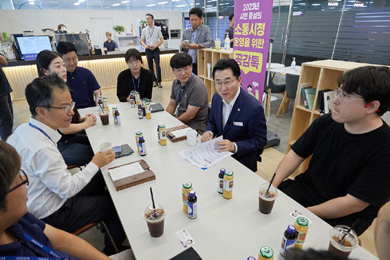 À̳¯ ¹Ú ½ÃÀåÀº ¡°±Ù¹« ½Ã°£À¸·Î ÀÎÇØ ½ÃÁ¤ Âü¿©°¡ ¾î·Á¿î ±â¾÷±Ù·ÎÀÚµé°ú ¸¸³ª¼ ½ÃÁ¤¿î¿µ°ú °ü·ÃÇØ ¼ÒÅëÇϰíÀÚ ÀÚ¸®¸¦ ¸¶·ÃÇß´Ù¡±¸ç ÄÉÀÌ¿£Á¦ÀÌ ÀÓÁ÷¿øµéÀÇ °ÇÀÇ »çÇ×°ú ÀǰߵéÀ» ûÃëÇß´Ù.