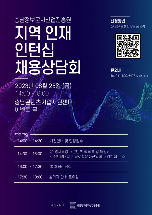 ¡®2023 Áö¿ªÀÎÀç ¸ÅĪ ÀÎÅÏ½Ê Ã¤¿ë»ó´ãȸ¡¯´Â ¿À´Â 8¿ù 25ÀÏ Ãæ³² ¾Æ»ê½Ã ¹è¹æÀ¾¿¡ À§Ä¡ÇÑ Ãæ³²ÄÜÅÙÃ÷±â¾÷Áö¿ø¼¾ÅÍ¿¡¼ ¿¸°´Ù.