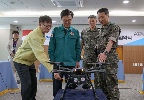 µµ´Â 8¿ù 22ÀÏ µµÃ» »óȲ½Ç¿¡¼ 2023 À»Áö¿¬½À°ú ¿¬°èÇØ À°±º Á¦32º¸º´»ç´Ü°ú ¡®½Ç½Ã°£ µå·Ð¿µ»ó °øÀ¯Ã¼°è ±¸Ãà ¹× ±º ÀÛÀü¡¤ÈÆ·Ã Áö¿øÀ» À§ÇÑ µå·Ð ¿î¿ë ¾÷¹«Çù¾à¡¯À» ü°áÇß´Ù.