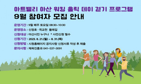 °È±â ÇÁ·Î±×·¥Àº Àü¹®ÁöµµÀÚ°¡ ¡®°Ç°ÇÑ °È±â¡¯ ¹æ¹ýÀ» ±³À°Çϰí ÇÔ²² °È´Â °ÍÀ¸·Î, 9¿ù ¸ÅÁÖ Åä¿äÀÏ ¿ÀÀü 8½Ã 30ºÐºÎÅÍ 2½Ã°£¾¿ ÁøÇàµÈ´Ù.