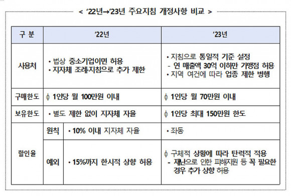¾È ÀÇ¿øÀÌ ÃæÃ»³²µµ·ÎºÎÅÍ Á¦Ãâ¹ÞÀº ÀڷḦ ºÐ¼®ÇÑ °á°ú ¡®2022³â Áö¿ª»ç¶û»óǰ±Ç °ü·Ã ÁÖ¿äÁöħ¡¯ÀÇ »ç¿ëó´Â ¡¸Áß¼Ò±â¾÷±âº»¹ý¡¹»ó Áß¼Ò±â¾÷À̸é Çã¿ëÀÌ µÇ°í, ÁöÀÚü Á¶·Ê¡¤ÁöħÀ¸·Î Ãß°¡ Á¦ÇÑÀÌ °¡´ÉÇß´Ù. ±¸¸ÅÇѵµ´Â 1ÀÎ´ç ¿ù 100¸¸¿ø À̳»À̸ç, º¸À¯Çѵµ ¿ª½Ã º°µµ Á¦ÇÑ ¾øÀÌ ÁöÀÚüÀÇ ÀÚÀ²¿¡ ¸Ã°å´Ù.