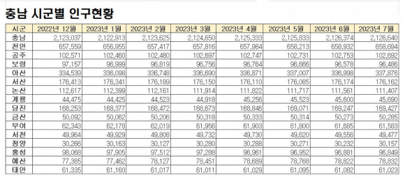¿ÃÇØ Ãæ³²µµ ³» Àα¸°¡ 7°³¿ù ¿¬¼Ó »ó½ÂÇϸç Áö³´Þ 212¸¸ 6õ640¸íÀ» ±â·Ï, ´ëÀü ºÐ¸® ÀÌÈÄ ÃÖ°íÁ¡À» 2°³¿ù ¿¬¼Ó ÀçÀÛ¼ºÇß´Ù.