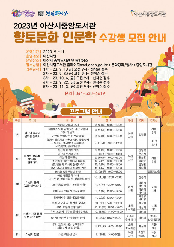 À̹ø Çà»ç´Â ¼±Âø¼øÀ¸·Î Âü¿©ÇÒ ¼ö ÀÖÀ¸¸ç, ±âŸ ÀÚ¼¼ÇÑ »çÇ×Àº ¾Æ»ê½Ã¸³µµ¼°ü ´©¸®Áý(https://ascl.asan.go.kr)¿¡¼ È®ÀÎÇϰųª Áß¾Óµµ¼°ü(041-530-6619)À¸·Î ¹®ÀÇÇÏ¸é µÈ´Ù.