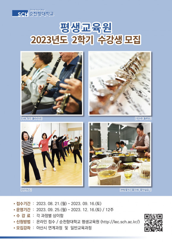 ¼øÃµÇâ´ëÇб³(ÃÑÀå ±è½Â¿ì) Æò»ý±³À°¿ø(¿øÀå ±è¹Î)Àº 9¿ù 16ÀϱîÁö 2023-2Çбâ ÀϹݱ³À°°úÁ¤ ¹× ¾Æ»ê½Ã ¿¬°è°úÁ¤ ¼ö°»ýÀ» ¸ðÁýÇÑ´Ù°í 5ÀÏ ¹àÇû´Ù.
