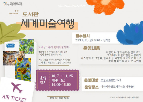 ´ë»óÀº ¼¼°è¹®È ¿¹¼ú¿¡ °ü½É ÀÖ´Â ÃʵîÇлý 4~6ÇгâÀ¸·Î ¼±Âø¼ø 15¸íÀ» ¸ðÁýÇÑ´Ù.