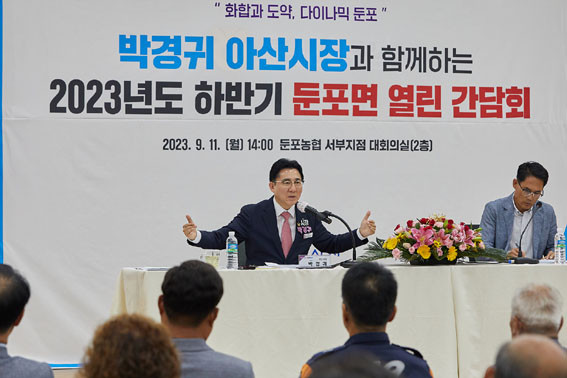 µÐÆ÷³óÇù ¼ºÎÁöÁ¡¿¡¼ ÁøÇàµÈ À̳¯ °£´ãȸ´Â ¹Ú°æ±Í ½ÃÀåÀÇ ÃëÀÓ ÈÄ µÐÆ÷¸é¿¡¼ ÁøÇàµÈ ¼¼ ¹øÂ° °ø½Ä °£´ãȸ·Î, ±èÈñ¿µ ¾Æ»ê½ÃÀÇȸ ÀÇÀåÀ» ºñ·ÔÇØ Áö¿ª ±â°ü¡¤´ÜüÀå°ú ÀÏ¹Ý ½Ã¹Î µî 100¿© ¸íÀÌ Âü¼®Çß´Ù.