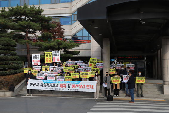 ¾Æ»ê½Ã »çȸÀû°æÁ¦¸¦ À§ÇÑ ½Ã¹Î¸ðÀÓÀº Áö³ 11¿ù 8ÀÏ ¾Æ»ê½Ãû ¾Õ¿¡¼ ¾Æ»ê½Ã »çȸÀû°æÁ¦°ú ÆóÁö¸¦ ¹Ý´ëÇÏ´Â ±âÀÚȸ°ßÀ» °¡Á³´Ù.
