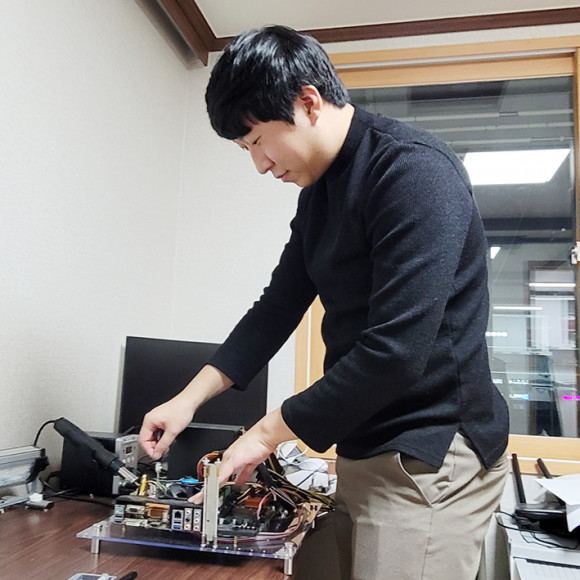 ƯÈ÷ °¡Àå Àαâ ÀÖ´Â »ç¾÷Àº ¡®PC°ø¹æ¡¯À¸·Î ´ëÇп¡¼ Àü±âÀüÀÚ¼ºñ½ºÇÐÀ» Àü°øÇÑ À̱¤¿¬ ´ëÇ¥ÀÇ 6³â°£ÀÇ Åë½Å °æ·Â°ú Àü¹®ÀûÀÎ ±â¼úÀ» Áý¾àÇÑ »ç¾÷ÀÌ´Ù. ±×°¡ Á¶¸³ÇÑ ÄÄÇ»ÅÍ ´ë¼ö´Â ¾à 450´ë¿¡ ´ÞÇϸç, À̰÷¿¡¼ Áö±Ýµµ ´Ù¾çÇÑ ÇÁ·Î±×·¥µéÀÌ °³¹ßµÇ°í ÀÖ´Ù.