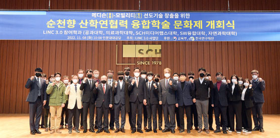 À̹ø ¡®¼øÃµÇâ »êÇп¬Çù·Â À¶ÇÕÇмú¹®ÈÁ¦¡¯´Â ¼øÃµÇâ´ë LINC 3.0 »ç¾÷´Ü ÁÖ°üÀ¸·Î ¸Þµð½¼(Medicine)°ú ¸ðºô¸®Æ¼(Mobility)·Î ´ëÇ¥µÇ´Â ´ëÇаú Áö¿ªÀÇ Æ¯È ºÐ¾ß¸¦ À̲ô´Â 5°³ ´Ü°ú´ëÇÐ(°ø°ú´ëÇÐ, SWÀ¶ÇÕ´ëÇÐ, ÀÚ¿¬°úÇдëÇÐ, ÀÇ·á°úÇдëÇÐ, SCH¹Ìµð¾î·¦½º´ëÇÐ)ÀÌ °øµ¿ Âü¿©ÇØ ¸Þµð½¼(À¶ÇÕ)-¸ðºô¸®Æ¼(¹Ýµð) ºÐ¾ß »êÇп¬Çù·Â ¼º°ú¸¦ Àü½Ã, ¹ßÇ¥ÇÏ´Â Çü½ÄÀ¸·Î ÁøÇàµÆ´Ù.