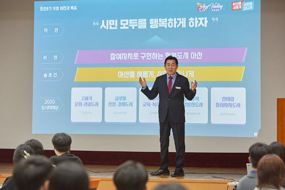±³À°Àº ¹Ú°æ±Í ½ÃÀåÀÇ ½ÃÀü ºñÀü Ư°À¸·Î ½ÃÀ۵ƴÙ. 63¸íÀÇ ½Å±Ô °ø¹«¿ø ¾Õ¿¡ ¼± ¹Ú ½ÃÀåÀº ¡°°øÁ÷ÀÚÀÇ ¿ì¼± °¡Ä¡´Â ¾ðÁ¦³ª ½Ã¹ÎÀÇ ÇູÀ̾î¾ß ÇÑ´Ù¡±°í °Á¶ÇÏ¸ç ¡°°ø¹«¿øÀ̶ó´Â Á÷¾÷°ú ¾Æ»êÀ̶ó´Â Áö¿ªÀ» ÅÃÇÑ ÀÌÀ¯´Â Á¦°¢°¢À̰ÚÁö¸¸, ¾Æ»ê½Ã¹Î°ú ¾Æ»êÀÇ ¹Ì·¡¸¦ À§ÇØ ÀÏÇÑ´Ù´Â Àںνɰú Ã¥ÀÓ°¨À» ÀØÁö ¸»°í ÀÏÇØ´Þ¶ó¡±°í ¸»Çß´Ù.