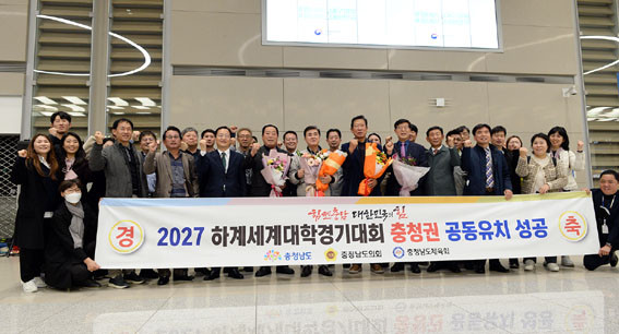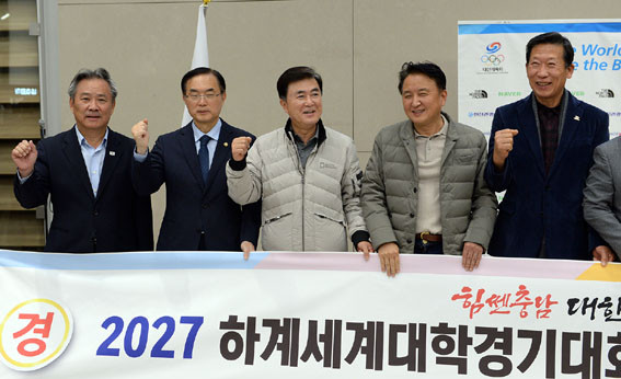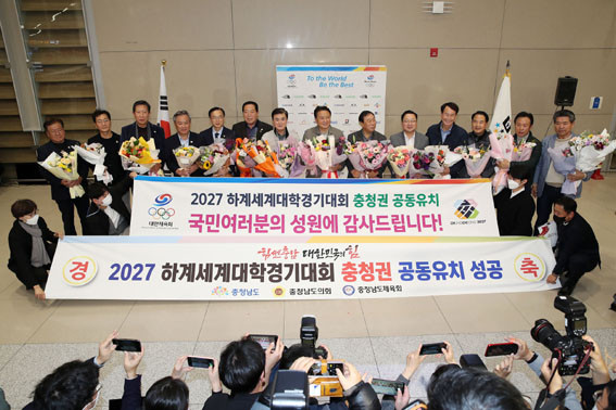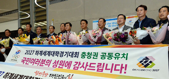 ±èÅÂÈì Ãæ³²µµÁö»ç¸¦ ºñ·ÔÇÑ ÃæÃ»±Ç 4°³ ½ÃµµÁö»ç, ÀÇȸ ÀÇÀå, üÀ°È¸Àå µîÀ¸·Î ±¸¼ºµÈ °øµ¿´ëÇ¥´ÜÀº º§±â¿¡ ºê·ò¼¿¿¡¼ ¿¸° ±¹Á¦´ëÇнºÆ÷Ã÷¿¬¸Í(FISU) ÁýÇàÀ§¿øÈ¸ ÃÑȸ¿¡ Âü¼®ÇØ 2027 Çϰ輼°è´ëÇаæ±â´ëȸ¸¦ ¼º°øÀûÀ¸·Î À¯Ä¡Çϰí À̳¯ ÀÎõ°øÇ× ÀÔ±¹Àå¿¡ µé¾î¼¹´Ù.