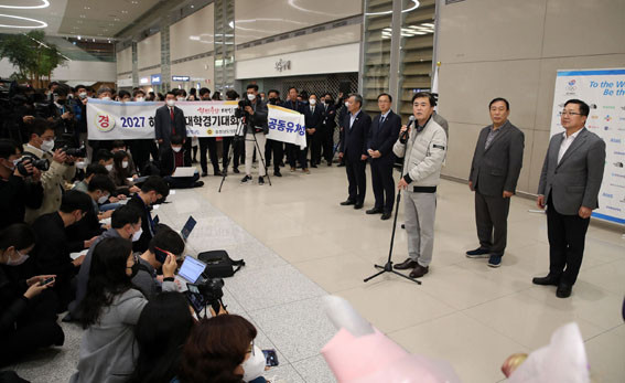 ÀÌ ÀÚ¸®¿¡¼ ±èÅÂÈì Áö»ç´Â ¡°2027 Çϰ輼°è´ëÇаæ±â´ëȸ À¯Ä¡ ¼º°øÀº 550¸¸ ÃæÃ»Àΰú Àü ±¹¹ÎÀÇ ¿°¿øÀÌ Çѵ¥ ¸ð¾ÆÁø °á°ú·Î, ±¹°¡°¡ ¾Æ´Ñ Áö¹æÁ¤ºÎ ÁÖµµ·Î ÀÌ·ï³Â´Ù´Â Á¡¿¡¼ Àǹ̰¡ Å©´Ù¡±¶ó°í ¸»Çß´Ù.