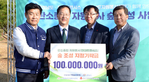 Çö´ëÆ®·£½Ã½º Á÷¿øµéÀº °È±â Ä·ÆäÀÎ µ¿Âü°ú 1¾ï ¿øÀÇ ÁöÁ¤ ±âºÎ¸¦ ÅëÇØ À̹ø ź¼ÒÁ߸³ ÀÚ¿øºÀ»ç ½£ Á¶¼º¿¡ ÈûÀ» º¸ÅÂ°í ³ª¼¹´Ù.
