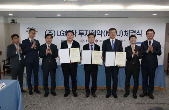 À̳¯ Çù¾à½Ä¿¡¼ ±è Áö»ç´Â ¡°´ëÇѹα¹ ´ëÇ¥ ±â¾÷ÀÎ LGÈÇÐÀº ¼®À¯ÈÇп¡¼ ÷´Ü¼ÒÀç¿Í »ý¸í°úÇÐ ºÐ¾ß±îÁö ±Û·Î¹ú ±â¾÷À¸·Î °Åµì³ª°í ÀÖ°í, À̹ø ÅõÀÚ´Â Ãæ³²µµ°¡ ÁßÁ¡ ÃßÁø ÁßÀΠź¼ÒÁ߸³ Á¤Ã¥°ú ÀÏÄ¡ÇÑ´Ù¡±¶ó¸ç ȯ¿µÀÇ ¶æÀ» ¹àÇû´Ù.
