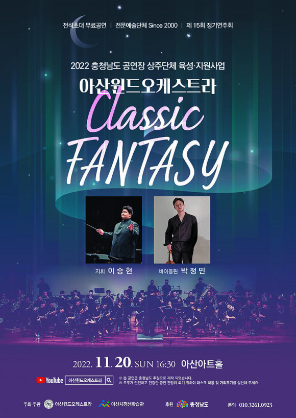 2022 ÃæÃ»³²µµ °ø¿¬Àå»óÁÖ´Üü À°¼º¡¤Áö¿ø»ç¾÷À¸·Î ¼±Á¤µÈ Àü¹®¿¹¼ú´Üü ¾Æ»êÀ©µå¿ÀÄɽºÆ®¶ó(´ÜÀå Á¶ÇѼö)°¡ ¿À´Â 11¿ù 20 ÀÏ ¿ÀÈÄ 4½Ã 30ºÐ~6½Ã±î½Ã ¾Æ»ê½ÃÆò»ýÇнÀ°ü ¾Æ»ê¾ÆÆ®È¦¿¡¼ ¡®Classic Fantasy¡¯¶ó´Â ÁÖÁ¦·Î ¿¬ÁÖȸ¸¦ °³ÃÖÇÑ´Ù.