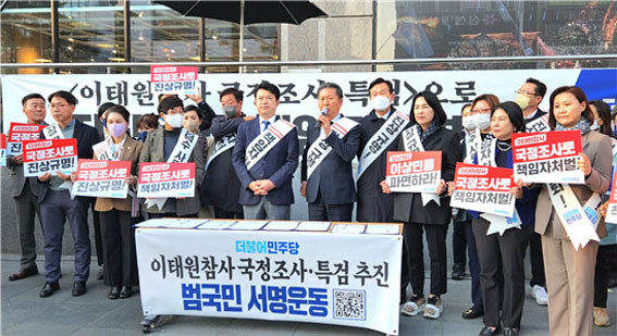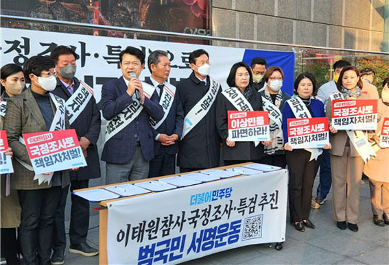 À̾î¼, Ãæ³²µµ´ç ±è¿µ¼ö û³âÀ§¿øÀåÀÌ ¡°10.29ÀÌÅ¿øÂü»ç ±¹Á¤Á¶»ç¡¤Æ¯°Ë Áï°¢ ¼ö¿ëÇ϶󡱴 ¼º¸í¼¸¦ ³¶µ¶ÇÏ°í ¼¸í ¿îµ¿À» ÁøÇàÇß´Ù.