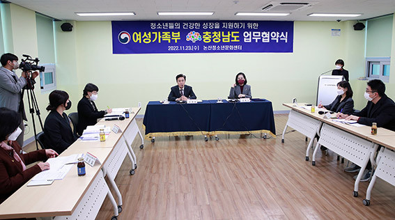 | | ¡è¡è <»çÁøÁ¦°ø=Ãæ³²µµ> | ¨Ï ¿Â¾ç½Å¹® | | Ãæ³²µµ´Â 11¿ù 23ÀÏ ³í»êû¼Ò³â¹®È¼¾ÅÍ¿¡¼ ¿©¼º°¡Á·ºÎ¿Í û¼Ò³âÁ¤Ã¥ ºÐ¾ß Çù·ÂÀ» °ÈÇϰí, û¼Ò³âÀÇ °Ç°ÇÑ ¼ºÀåÀ» µµ¸ðÇϱâ À§ÇÑ ¾÷¹«Çù¾àÀ» ü°áÇß´Ù°í ¹àÇû´Ù.