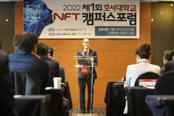 ±âÁ¶ ¹ßÁ¦¿¡ ³ª¼± ±è»ó¹ü È£¼´ë ±³¼ö´Â ¡°È£¼´ë´Â ±¹³» ÃÖÃÊ·Î ´ëÇÐ Àüü¸¦ À§ÇÑ NFT ÀÎÇÁ¶ó¸¦ ±¸ÃàÇÒ ¿¹Á¤À̸ç, À̸¦ ÅëÇØ ´ëÇÐ ±¸¼º¿ø Àüü°¡ NFT°¡ ÁÖ´Â ±â¼úÇõ½ÅÀ» °æÇèÅä·Ï ÇϰíÀÚ ÇÑ´Ù.¡±¸ç, ¡°±³À°, ¿¬±¸, »êÇÐÇù·Â, Ä·ÆÛ½º ȯ°æ 4°¡Áö ºÐ¾ß¸¦ ÃàÀ¸·Î ´ëÇÐÀÇ Ã¢ÀÛ¹°°ú ¿¬±¸¼º°ú, ƯÇã µîÀÇ ÀÚ»êÀ» NFT·Î ¹ßÇàÇÏ°í ¿©±â¿¡¼ ÆÄ»ýÇÏ´Â °¡Ä¡¸¦ ºñÁî´Ï½º ¸ðµ¨·Î °³¹ßÇØ, ´ëÇÐ ÀÚ»ê°ú Çлý ÇàÁ¤ÀÇ NFT Ç÷§ÆûȺÎÅÍ Áö¿ªÀÇ NFT ÀÚ»ê°ü¸® ÇãºêÀÇ ¿ªÇÒ±îÁö ¼öÇàÇÒ ¿¹Á¤ÀÌ´Ù.¡±°í Æ÷ºÎ¸¦ ¹àÇû´Ù.