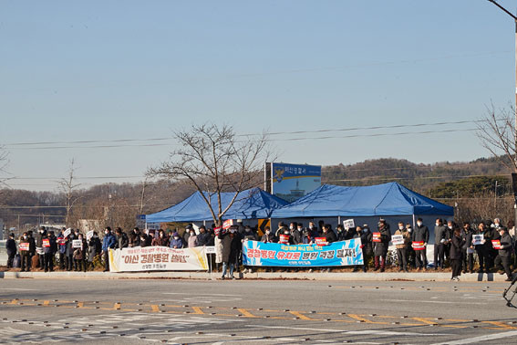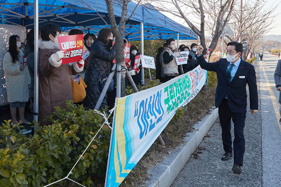 À̳¯ °æÂûŸ¿î ÀÔ±¸¿¡´Â ¿µÇÏÀÇ ³¯¾¾¿¡µµ 2500¿© ¸íÀÇ ½Ã¹ÎÀÌ ¸ð¿© Áö¿ª¹ÎµéÀÇ °£ÀýÇÑ ¿¸ÁÀ» º¸¿©Áֱ⵵ Çß´Ù. À̵éÀº Æò°¡´ÜÀÇ ¾Æ»ê ¹æ¹®À» ȯ¿µÇÏ´Â ÇÑÆí, ¡°°æÂûº´¿ø À¯Ä¡´Â ´ëÅë·É °ø¾à¡±À̶ó¸é¼ ¡°°æÂûº´¿ø ¾Æ»ê À¯Ä¡¡± ±¸È£¸¦ ¼Ò¸® ³ô¿© ¿ÜÃÆ´Ù.