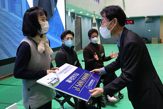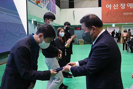 Á¦12ȸ ¾Æ»ê½ÃÀå¾ÖüÀ°ÀÎÀÇ ¹ãÀº 2022³â ¾Æ»ê½Ã Àå¾ÖÀÎüÀ°¹ßÀü¿¡ °øÇåÇÑ À¯°øÀÚµéÀÇ Ç¥Ã¢°ú Àå¾ÖÀÎüÀ° ¹ßÀü±â±Ý, ÀåÇбÝÀ» Àü´ÞÇϸç ÇÑ ÇØ¸¦ ¸¶¹«¸®ÇÏ´Â °ø½Ä Çà»ç¸¦ ÁøÇàÇß´Ù.