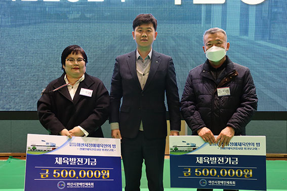 Àå¾ÖÀÎüÀ°¹ßÀü±â±Ý ¹× ÀåÇÐ±Ý Àü´Þ½Ä¿¡¼´Â µû¶æÇÑ ¸¶À½ÀÌ ÁÙÁÙÀÌ À̾îÁ³´Ù. ¢ß¿¡ÀÌÆ¼ÀÌ¿£Áö °Çö±Ô ´ëÇ¥ÀÌ»ç, ¹Ì·¡ÀÚ¿ø ±è¼ø°í ´ëÇ¥, ¢ßÇϳªÀºÇà ¾Æ»ê±ÝÀ¶¼¾ÅÍ À̹ΰæ ÁöÁ¡Àå, ¢ßÇØ¼ºÀü·Â À̼®ÀÏ ´ëÇ¥ÀÌ»ç, ¾Æ»ê½Ãû ¿©ÀÚÇÏŰÆÀ ÀÓÈï½Å °¨µ¶°ú ÇÏŰÆÀ ¼±¼ö´Ü, ¢ßÀϼº¾ÈÀü Á¶¼öÁø ´ëÇ¥, À±½ÂÀç(°³ÀÎÈÄ¿ø)°¡ ¾Æ»ê½ÃÀÇ Àå¾ÖÀÎüÀ° ¹ßÀüÀ» À§ÇÑ ±âºÎ±ÝÀ» ÈÄ¿øÇÏ¸ç µû¶æÇÑ ¸¶À½À» ³ª´©¾ú´Ù.