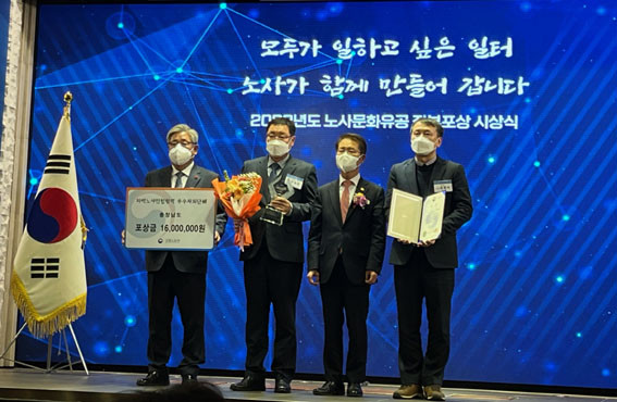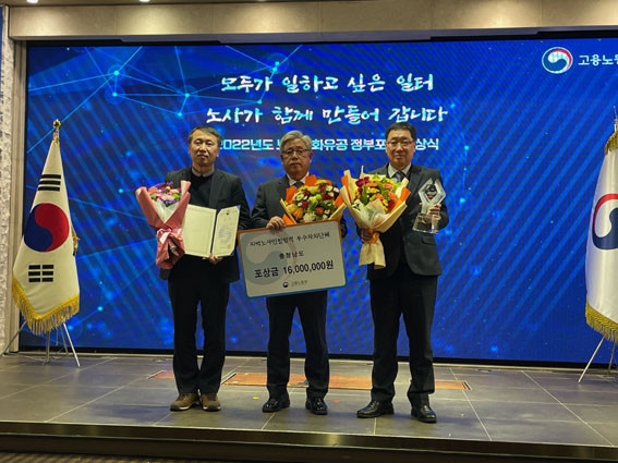 µµ´Â 12¿ù 20ÀÏ ¼¿ï ¿©Àǵµ ·ç³ª¹Ì¿¤·¹ ÄÁº¥¼Ç¼¾ÅÍ¿¡¼ ¿¸° ¡®2022³â °í¿ë³ëµ¿ºÎ ³ë»ç¹®ÈÀ¯°ø Á¤ºÎÆ÷»ó ½Ã»ó½Ä¡¯¿¡¼ Áö¿ª ³ë»ç¹ÎÁ¤ Çù·Â Ȱ¼ºÈ ¿ì¼öÁöÀÚü ´ë»óÀ» ¹Þ¾Ò´Ù.