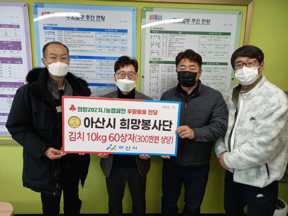 | | ¡è¡è ¡ã(¿ÞÂʺÎÅÍ) Èñ¸ÁºÀ»ç´Ü ÀÌ»ó¼ö Á÷Àü ´ÜÀå, Àüº´°ü ±¹Àå, ±è¿µ¿ì ´ÜÀå, ÀÌÁ¾ÀÎ ´ëÇ¥. Àü´Þ½Ä ±â³ä <»çÁøÁ¦°ø=¾Æ»ê½Ã> | ¨Ï ¿Â¾ç½Å¹® | | ¾Æ»ê½Ã Èñ¸ÁºÀ»ç´Ü(´ÜÀå ±è¿µ¿ì)ÀÌ Áö³ 12¿ö¤Ã¤© 19ÀÏ ¾Æ»ê½Ã(½ÃÀå ¹Ú°æ±Í)¸¦ ¹æ¹®ÇØ Ãë¾à°èÃþÀ» À§ÇÑ 300¸¸ ¿ø »ó´ç »ç¶ûÀÇ ±èÄ¡(10kgµéÀÌ) 60»óÀÚ¸¦ ÈÄ¿øÇß´Ù.