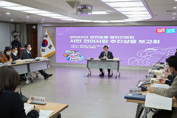 À̹ø º¸°íȸ¿¡¼´Â Áö³ 7¿ù 12ÀϺÎÅÍ 27ÀϱîÁö ÁøÇàµÈ À¾¸éµ¿º° ¿¸° °£´ãȸ¿¡¼ °ÇÀÇµÈ ÃÑ 506°ÇÀÇ ½Ã¹Î °ÇÀÇ»çÇ׿¡ ´ëÇÑ ÃßÁø»óȲ°ú ÇâÈÄ Ã³¸®°èȹÀÌ ÁßÁ¡ÀûÀ¸·Î ³íÀǵƴÙ.