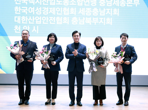 ÇùÀÇȸ »ç¹«±¹ÀÌ ÁÖ°üÇÏ´Â ¿ì¼ö»ç·Ê ºÎ¹®¿¡¼´Â ´ë»ó¿¡ ¡®ÀÛÀº»ç¾÷Àå ¾ÈÀüÄÁ¼³ÆÃ Áö¿ø»ç¾÷¡¯À», ÃÖ¿ì¼ö»ó¿¡ ¡®³ëµ¿Àüȯ Ưº°À§¿øÈ¸ ¿î¿µ¡¯À», ¿ì¼ö»ó¿¡ ¡®Ãæ³²³ë»çÇù·ÂÆ÷·³¡¯À» ¼±Á¤ÇØ ½Ã»óÇß´Ù.