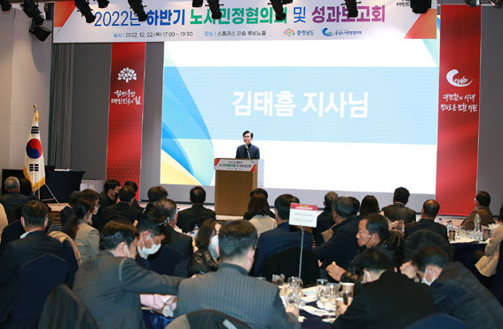 ÇùÀÇȸ À§¿øÀåÀ» ¸ÃÀº ±èÅÂÈì Áö»ç, °í¼®Èñ Çѱ¹³ëÃÑ Ãæ³²¼¼Á¾Á¸ºÎÀÇÀå, ³ë»ç¹ÎÁ¤ÇùÀÇȸ ÀÇ¿ø µî 100¿© ¸íÀÌ Âü¼®ÇÑ °¡¿îµ¥ ¿¬ À̹ø Çà»ç´Â ½Ã»ó, ¼º°ú ¹× ¿ì¼ö»ç·Ê º¸°í, ³ë»ç¹ÎÁ¤ÇùÀÇȸ °øµ¿¼±¾ð µîÀÇ ¼øÀ¸·Î ÁøÇàÇß´Ù.