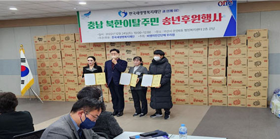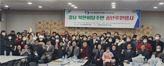 Çѱ¹»õ»ý¸íº¹ÁöÀç´Ü(ÀÌ»çÀå ¼ÛâÀÍ)ÀÌ ÈÄ¿øÇØ ¿¸° À̳¯ Çà»ç´Â Ãæ³²Áö¿ªÀÇ Å»ºÏ¹Î °ø½Ä´ÜüÀÎ ¿ì¸®-ONE(´ëÇ¥ ä½Å¾Æ)ÀÌ ÁÖÃÖÇØ Å»ºÏ¹Î°ú Áö¿ªÀÎ»ç µî 150¿©¸íÀÌ Âü¼®ÇØ ¼ºÈ²¸®¿¡ °³ÃֵƴÙ.