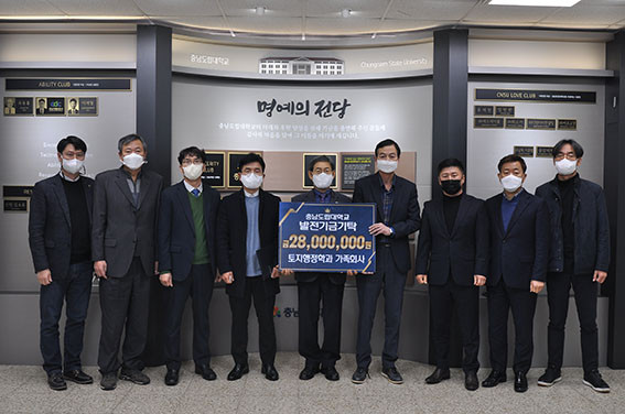 ÃæÃ»³²µµ ÁöÀûÁ÷°ø¹«¿ø ¸ðÀÓÀÎ ¾çÁöȸ¿Í ÅäÁöÇàÁ¤Çаú Á¹¾÷»ýµµ ´ëÇÐ ¹ßÀü¿¡ ÈûÀ» º¸ÅÉ´Ù. À̵éÀº À̳¯ °¢°¢ 120¸¸ ¿ø, 400¸¸ ¿øÀ» ±âŹÇÔ°ú µ¿½Ã¿¡ Áö¼ÓÀûÀ¸·Î ±âŹÇϰڴٴ ¾àÁ¤¼¸¦ ü°áÇß´Ù.