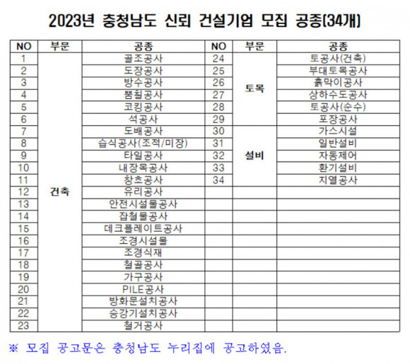 | | ¡è¡è ¡ã2023³â ÃæÃ»³²µµ ½Å·Ú °Ç¼³±â¾÷ ¸ðÁý °øÁ¾(34°³) | ¨Ï ¿Â¾ç½Å¹® | |