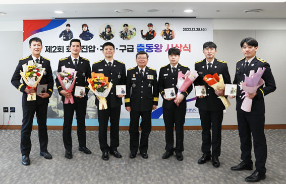 | | ¡è¡è ¡ã±è¿¬»ó ¼Ò¹æº»ºÎÀå(»çÁø °¡¿îµ¥)°ú ¼ö»óÀÚµéÀÇ ´Üü »çÁø <»çÁøÁ¦°ø=Ãæ³²¼Ò¹æº»ºÎ> | ¨Ï ¿Â¾ç½Å¹® | | Ãæ³²¼Ò¹æº»ºÎ´Â ÈÀ硤±¸Á¶¡¤±¸±Þ ºÐ¾ß¿¡¼ °¡Àå ¸¹ÀÌ Ã⵿Çϰí, ¿À·£ ½Ã°£ ÇöÀåÀ» ´©ºó ¡®Ã⵿¿Õ¡¯ 6¸íÀ» ¼±¹ßÇØ Æ÷»óÇß´Ù°í 12¿ù 29ÀÏ ¹àÇû´Ù.