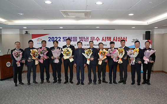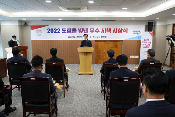 À̳¯ µµÃ» »óȲ½Ç¿¡¼ ¿¸° ¡®2022 Ãæ³² µµÁ¤À» ºû³½ ¿ì¼ö½ÃÃ¥ ½Ã»ó½Ä¡¯¿¡¼´Â ±èÅÂÈì Áö»ç°¡ Á÷Á¢ ¿ì¼ö½ÃÃ¥ ¼Ò°ü ºÎ¼Àå µî¿¡°Ô ǥâÆÐ¸¦ Àü´ÞÇÏ¸ç ¼ö»óÀ» ÃàÇÏÇß´Ù.