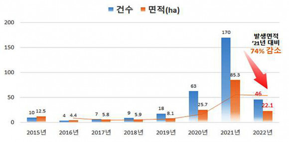 µµ³» °ú¼öÈ»óº´ ¹ß»ýÀº 2015³â õ¾È½Ã ÀÔÀå¸é¿¡¼ ÃÖÃÊ ¹ß»ýÇßÀ¸¸ç, ´ç½Ã ¹ß»ý ±Ô¸ð´Â 10³ó°¡ 12.5ha¿´´Ù.