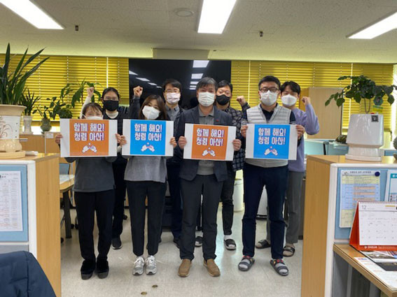 À̳¯ ¡®ÇÔ²² ÇØ¿ä! û·Å ¾Æ»ê!¡¯À̶ó´Â ±¸È£ ¾Æ·¡ °ø¹«¿ø Çൿ°·É°ú ºÎ´ç Áö½Ã ¹× °©Áú ¿¹¹æ »ç·Ê¸¦ °øÀ¯ÇÏ¸ç °øÁ÷ ±â°À» ¹Ù·Î ¼¼¿ì°í, Á÷¹«¼öÇà °úÁ¤¿¡¼ ¹ß»ýÇÒ ¼ö ÀÖ´Â ÀÌÇØÃæµ¹À» »çÀü ¿¹¹æÇØ Ã»·ÅÇÑ °øÁ÷¹®È¸¦ Á¶¼ºÇÒ ¼ö ÀÖµµ·Ï ÀÇÁö¸¦ ´ÙÁ³´Ù.