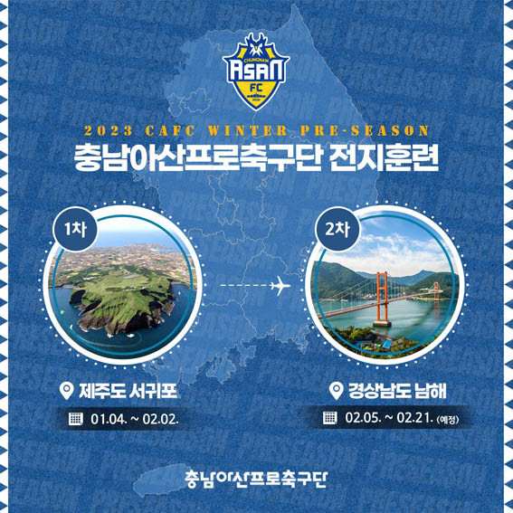 Ãæ³²¾Æ»ê ¼±¼ö´ÜÀº 1¿ù 4ÀÏ ¿ÀÀü, 1Â÷ ÀüÁöÈÆ·ÃÁöÀÎ Á¦ÁÖµµ ¼±ÍÆ÷½Ã·Î Ãâ¹ßÇϸç 2023½ÃÁð °ø½ÄÀûÀÎ ÀÏÁ¤À» ½ÃÀÛÇß´Ù.