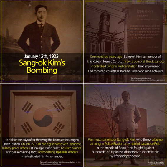 ÁÖ¿ä ³»¿ëÀº 1923³â 1¿ù 12ÀÏ ÀÇ¿´Ü¿ø ±è»ó¿ÁÀº ¼ö ¸¹Àº µ¶¸³¿îµ¿°¡¸¦ ź¾ÐÇß´ø ÀÏÁ¦ Á¾·Î°æÂû¼¿¡ ÆøÅºÀ» ´øÁö´Â ÀǰŸ¦ ÆîÃÆ´Ù°í ¼Ò°³Çß´Ù.