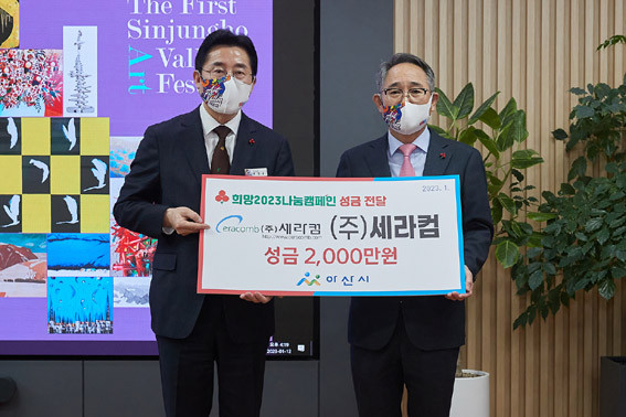 | | ¡è¡è ¡ã¹Ú°æ±Í ½ÃÀå, À̰ȫ ´ëÇ¥ÀÌ»ç(¿À¸¥ÂÊ) ÈÄ¿ø±Ý Àü´Þ ±â³ä <»çÁøÁ¦°ø=¾Æ»ê½Ã> | ¨Ï ¿Â¾ç½Å¹® | | ¢ß¼¼¶óÄÄ(´ëÇ¥ÀÌ»ç À̰ȫ)ÀÌ Áö³ 1¿ù 12ÀÏ ¾Æ»ê½Ã(½ÃÀå ¹Ú°æ±Í)¸¦ ¹æ¹®ÇØ ¡®Èñ¸Á2023³ª´®Ä·ÆäÀΡ¯ ÀÌ¿ô»ç¶û ¼º±Ý 2õ¸¸ ¿øÀ» Àü´ÞÇß´Ù.