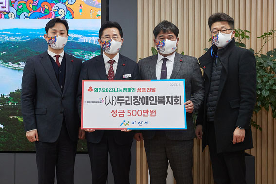 | | ¡è¡è ¡ã(¿ÞÂʺÎÅÍ) (»ç)µÎ¸®Àå¾ÖÀκ¹Áöȸ Ç㼺õ »ç¾÷´ÜÀå, ¹Ú°æ±Í ½ÃÀå, °íÁØÈñ ȸÀå, (»ç)µÎ¸®Àå¾ÖÀκ¹Áöȸ ¹ÚÁ¤ÈÆ ÀλçÆÀÀåÀÌ ¼º±Ý Àü´Þ ±â³ä»çÁøÀ» Âï°í ÀÖ´Ù. <»çÁøÁ¦°ø=¾Æ»ê½Ã> | ¨Ï ¿Â¾ç½Å¹® | | (»ç)µÎ¸®Àå¾ÖÀκ¹Áöȸ(ȸÀå °íÁØÈñ)°¡ Áö³ 1¿ù 18ÀÏ ¾Æ»ê½Ã(½ÃÀå ¹Ú°æ±Í)¿¡ ¡®Èñ¸Á2023³ª´®Ä·ÆäÀΡ¯ ÀÌ¿ô»ç¶û ¼º±Ý 500¸¸ ¿øÀ» Àü´ÞÇß´Ù.