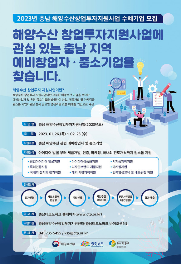 | | ¡è¡è <»çÁøÁ¦°ø=Ãæ³²µµ> | ¨Ï ¿Â¾ç½Å¹® | | Ãæ³²µµ´Â 2¿ï 1ÀϺÎÅÍ 23ÀϱîÁö ¡®Çؾç¼ö»ê â¾÷ ÅõÀÚ Áö¿ø»ç¾÷¡¯ ½ÅûÀ» ¹Þ´Â´Ù°í 1¿ù 26ÀÏ ¹àÇû´Ù.