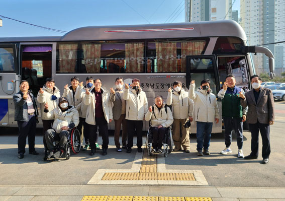 ´ëȸ Àå¼Ò·Î Ãâ¹ß Àü Ãæ³²Àå¾ÖÀξÆÀ̽ºÇÏŰÇùȸ Á¤°øÃ¶ ȸÀå, ¾Æ»ê½ÃÀå¾ÖÀκ¹Áö°ü ÀÌâȣ °üÀå, À±Ã¢ÀÏ »ç¹«±¹Àå, ÇùȸÀÌ»çÁøÀº ¼±¼ö´Ü¿¡ ´ëÇÑ ÀÀ¿ø ¹× °Ý·ÁÀÇ ½Ã°£À» °¡Á³´Ù.