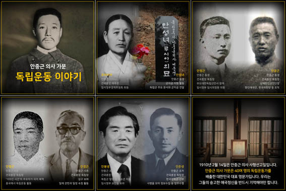 ¶ÇÇÑ ¾ÈÁß±Ù µ¿»ýÀÌÀÚ ÇÑÀξֱ¹´Ü Á¶Á÷¿¡ ±â¿©ÇÑ ¾È°ø±Ù, ¾ÈÁß±Ù »çÃÌÀÌÀÚ Áß±¹¿¡¼ µ¶¸³¿îµ¿À» ÆîÄ£ ¾È¸í±Ù, ±è±¸ º¸Á°üÀ» Áö³½ ¾È°æ±Ù, ±×¸®°í ¾ÈÁß±Ù Á¶Ä«ÀÎ ¾ÈºÀ»ý, ¾ÈÃá»ý µîÀ» ÀüÆÄÇß´Ù.