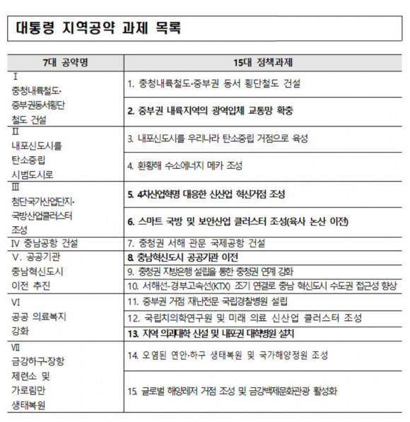 À±¼®¿ ´ëÅë·ÉÀº ´ëÅë·ÉÁ÷ ÀμöÀ§¿øÈ¸ »ç»ó óÀ½À¸·Î Áö¿ª±ÕÇü¹ßÀüƯº°À§¿øÈ¸¸¦ ²Ù¸®°í, Ãæ³²¿¡ ¡âÃæÃ»³»·úöµµ¡¤Áߺαǵ¿¼È¾´Üöµµ °Ç¼³ ¡â³»Æ÷½Åµµ½Ã¸¦ ź¼ÒÁ߸³ ½Ã¹üµµ½Ã·Î ¡â÷´Ü±¹°¡»ê¾÷´ÜÁö¡¤±¹¹æ»ê¾÷Ŭ·¯½ºÅÍ Á¶¼º ¡â¼»ê¹ÎÇ×(Ãæ³²°øÇ×) °Ç¼³ ¡â°ø°ø±â°ü Ãæ³²Çõ½Åµµ½Ã ÀÌÀü ÃßÁø ¡â°ø°ø ÀǷẹÁö °È ¡â±Ý°Çϱ¸¡¤ÀåÇ×Á¦·Ã¼Ò ¹× °¡·Î¸²¸¸ »ýź¹¿ø µî 7´ë °ø¾à 15´ë Á¤Ã¥°úÁ¦¸¦ ¾à¼ÓÇß´Ù.