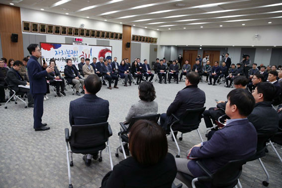 ÇÑÆí, À̳¯ Á÷¿øµéÀº Æò¼Ò ¾÷¹«¸¦ ÃßÁøÇÏ´Â °úÁ¤¿¡¼ °Þ¾ú´ø ÀηÂ, ¿¹»ê µî ºÎ¹®¿¡ ´ëÇÑ °³¼±À» ¿äûÇßÀ¸¸ç, ±è Áö»ç´Â ºü¸¥ ½ÃÀÏ ³» Á¦µµ °³¼± ¹× º¸¿ÏÇÒ °ÍÀ» ¾à¼ÓÇß´Ù.