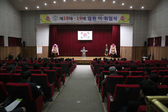 ÀÌ ÀÚ¸®¿¡¼ ±è Áö»ç´Â ½ÅÀÓ È¸ÀåÀÇ ÃëÀÓÀ» ÃàÇÏÇÏ¸ç ¡°Çѱ¹Èİè³ó¾÷°æ¿µÀÎ Ãæ³²µµ¿¬ÇÕȸ´Â Ãâ¹ü ÀÌ·¡ 1¸¸ 3õ¿© ¸íÀÇ Àü¹® ³ó¾÷ÀÎÀ» À°¼ºÇÏ°í ±â¼ú ±³À°, ³óÁ¤ °³Çõ ¿îµ¿À» ÅëÇØ Ãæ³² ³ó¾÷ÀÇ ±Ù°£À» ¸¶·ÃÇÑ ³ó¾÷ ¹ßÀüÀÇ ÁÖ¿ª¡±À̶ó¸é¼ ¡°¡®³ó¾÷ÀÎÀÇ ´ëº¯ÀÚ¡¯·Î¼ ³ó¾÷ÀÎ ±ÇÀÍ Çâ»ó¿¡ ¾ÕÀ弸ç Çå½Å°ú ³ë·ÂÀ» ±â¿ï¿© ¿Â ¿¬ÇÕȸ¿¡ °¨»çµå¸°´Ù¡±¶ó°í ¸»Çß´Ù.