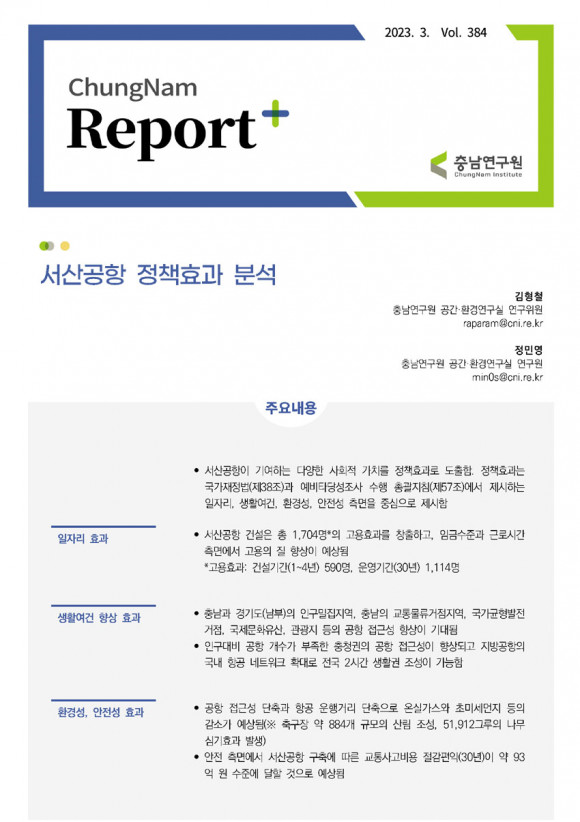 ¸®Æ÷Æ®¿¡ µû¸£¸é, ¼»ê°øÇ× °Ç¼³¿¡ µû¶ó 1õ704¸íÀÇ °í¿ëÈ¿°ú¸¦ âÃâÇÒ ¼ö ÀÖ°í, »ýȰ¿©°Ç Ãø¸é¿¡¼´Â Ãæ³²°ú °æ±âµµ(³²ºÎ) Áö¿ªÀÇ °øÇ× Á¢±Ù¼ºÀÌ 1½Ã°£ À̳»·Î °³¼±µÇ°í, ƯÈ÷ Ãæ³²ÀÇ ÁÖ¿ä ±³Åë¹°·ù°ÅÁ¡, Çõ½Åµµ½Ã, ±¹Á¦¹®ÈÀ¯»ê, ÁÖ¿ä °ü±¤Áö µîÀÇ Á¢±Ù¼º Çâ»óÀÌ ±â´ëµÈ´Ù°í ºÐ¼®Çß´Ù.